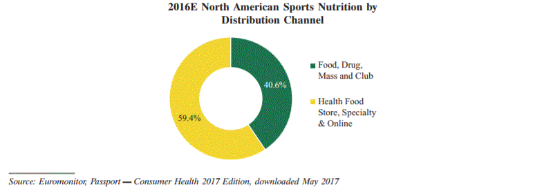 Similar to VMS products, sports nutrition products are distributed through food, drug, mass and club